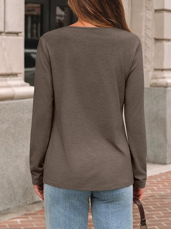 Long Sleeve Shirts for Women Tops V Neck Casual Top Comfortable Shirt Soft Basic Tees Women Blouses