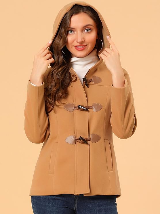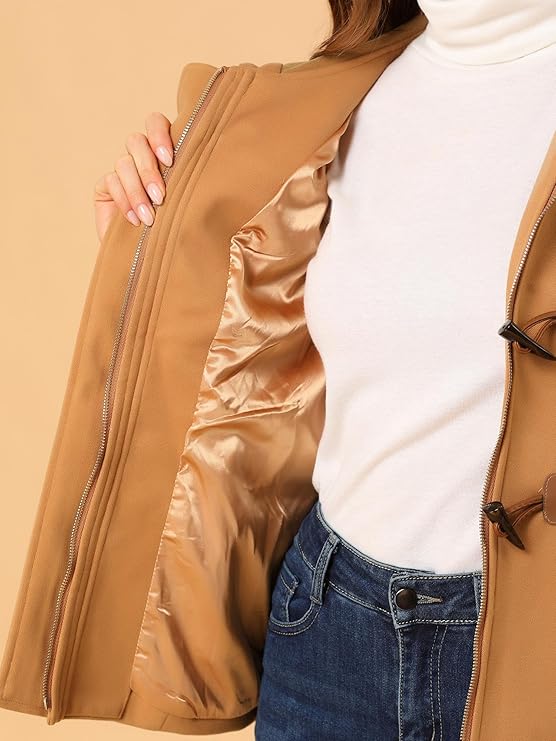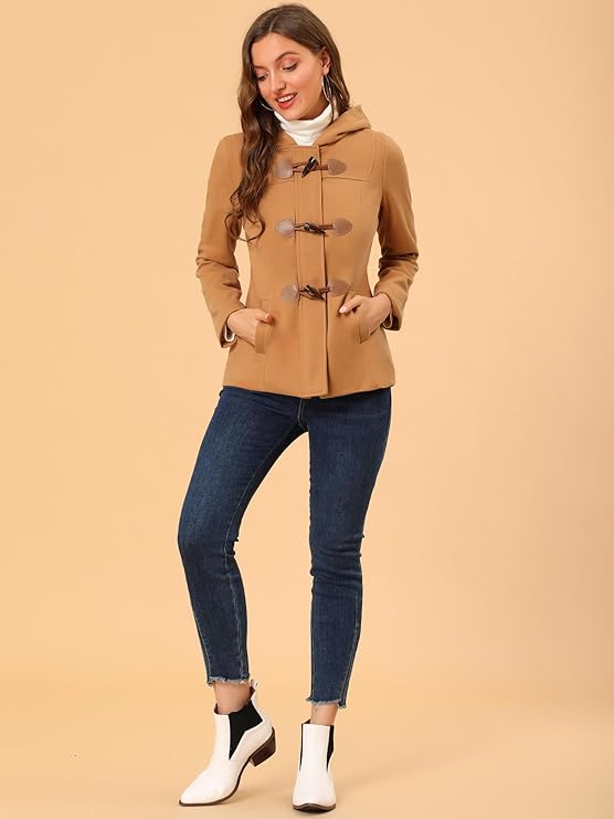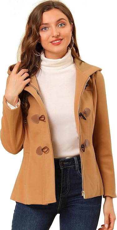 - This pea coat adopts a classic design of hoodie and zipper closure with toggle buttons, so that you can keep warm and fashionable in autumn and winter.