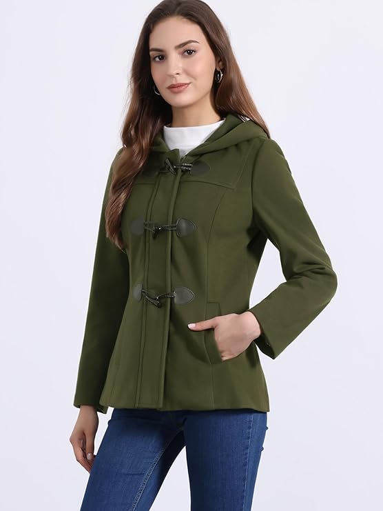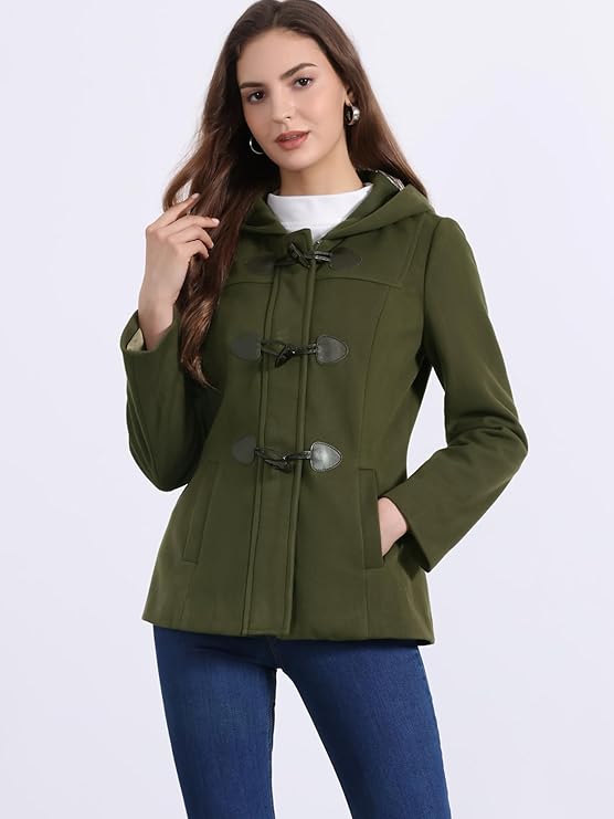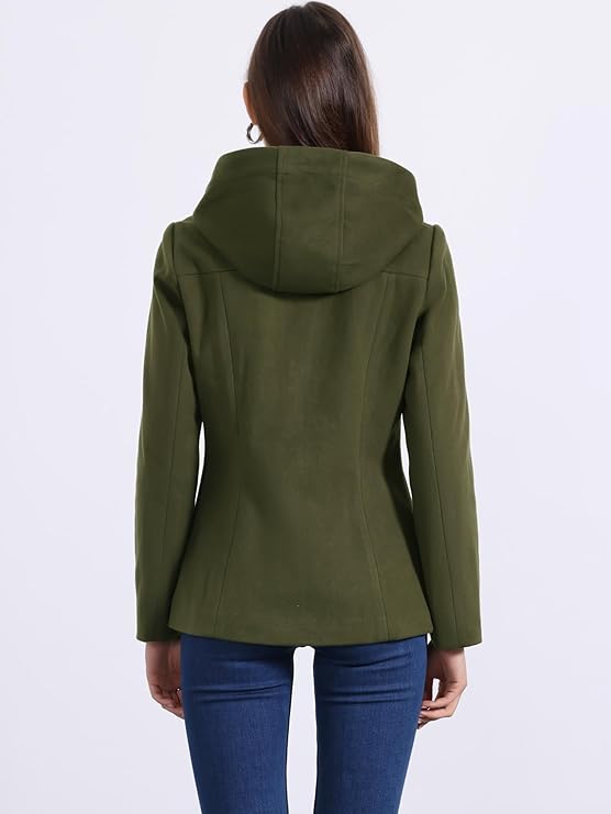 - This pea coat adopts a classic design of hoodie and zipper closure with toggle buttons, so that you can keep warm and fashionable in autumn and winter.