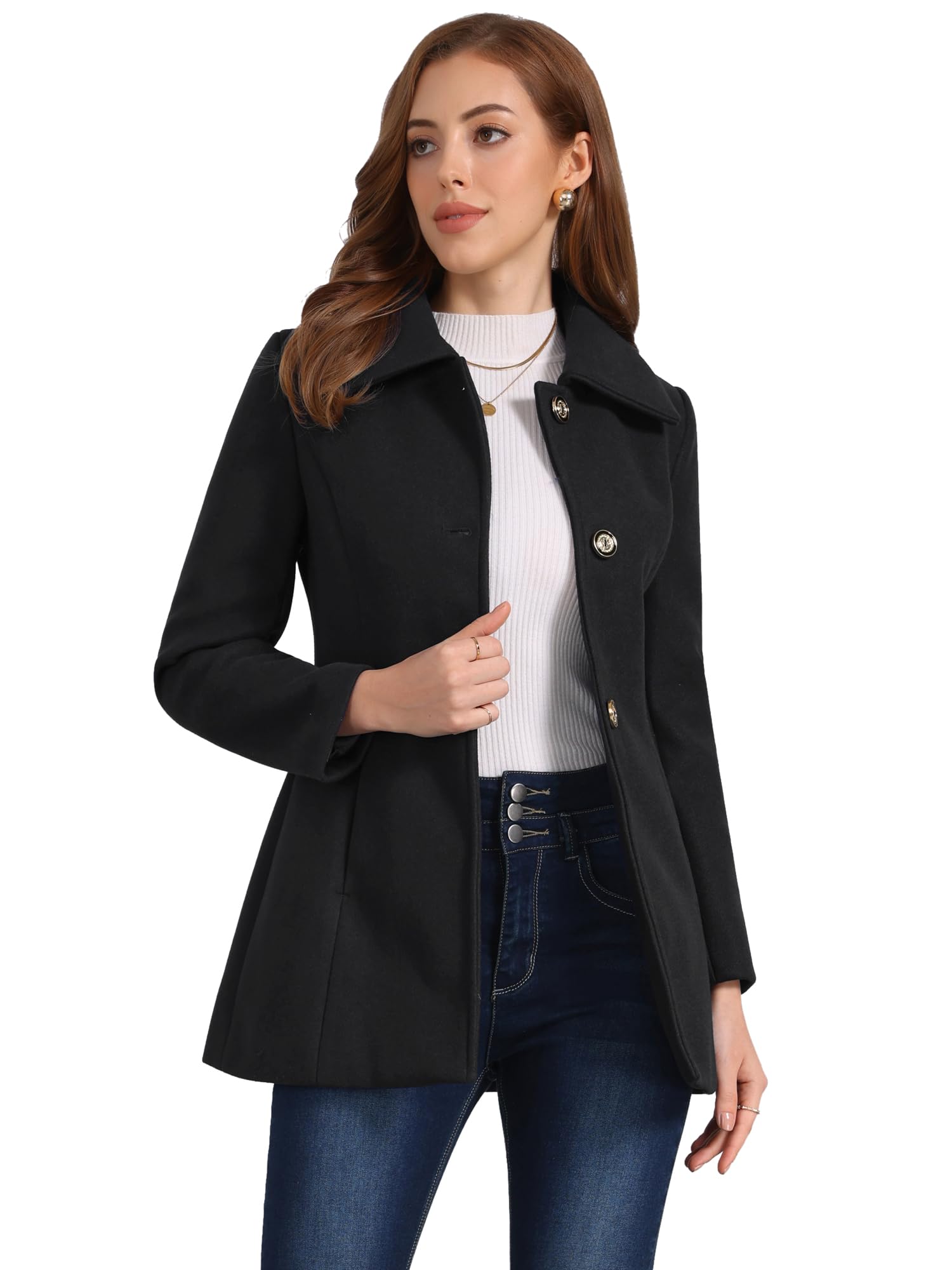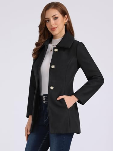 Women’s Single Breasted Turndown Collar Overcoat Vintage Winter Dress Coat with Pockets