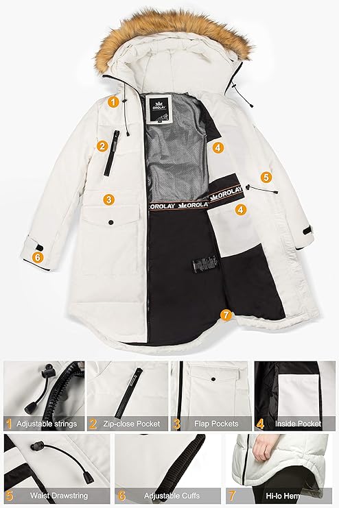 - Threaded cuffs will keep you warm and enable you to enjoy the premier luxury. The big hood with removable faux fur, drawstrings, and buckles can adjust the size better, to keep the hood from falling.