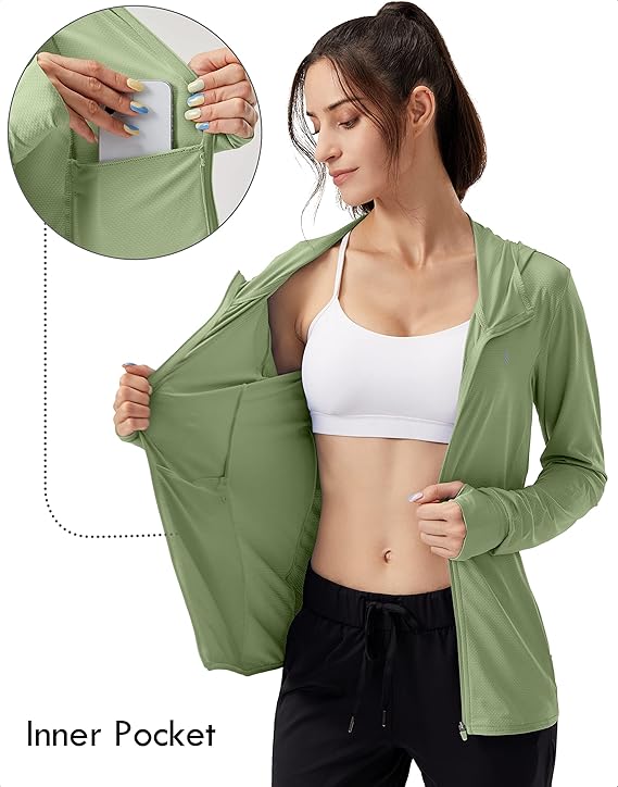 Women’s UPF 50+ Sun Protection Hoodie Jacket Lightweight Long Sleeve Sun Shirt for Women with Pocket Hiking Outdoor