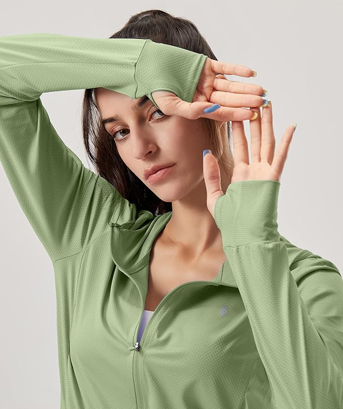 - Hoodie & Thumb Holes Desgin: Women’s sun shirts with hood give you more neck protection. The thumb holes keep the long sleeves in place and give extra coverage for sun protection.